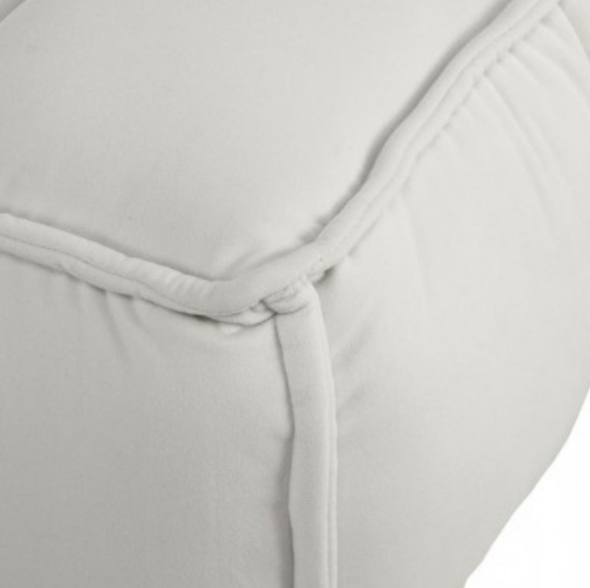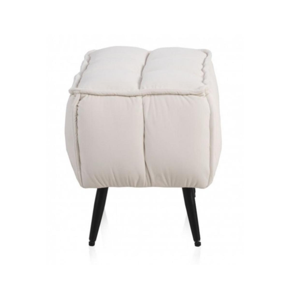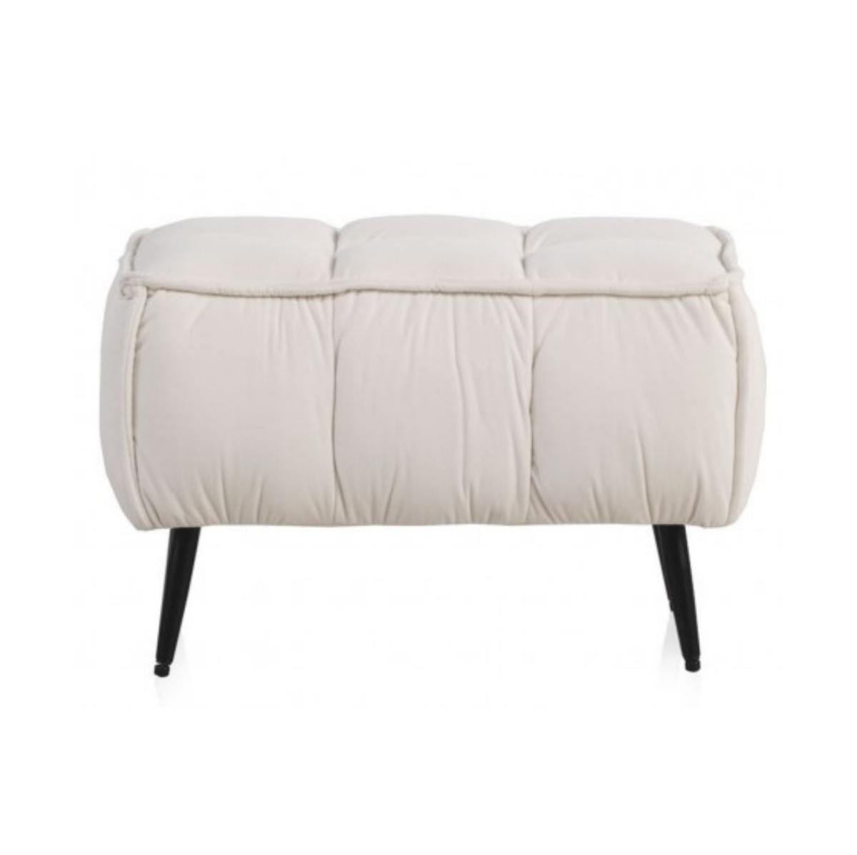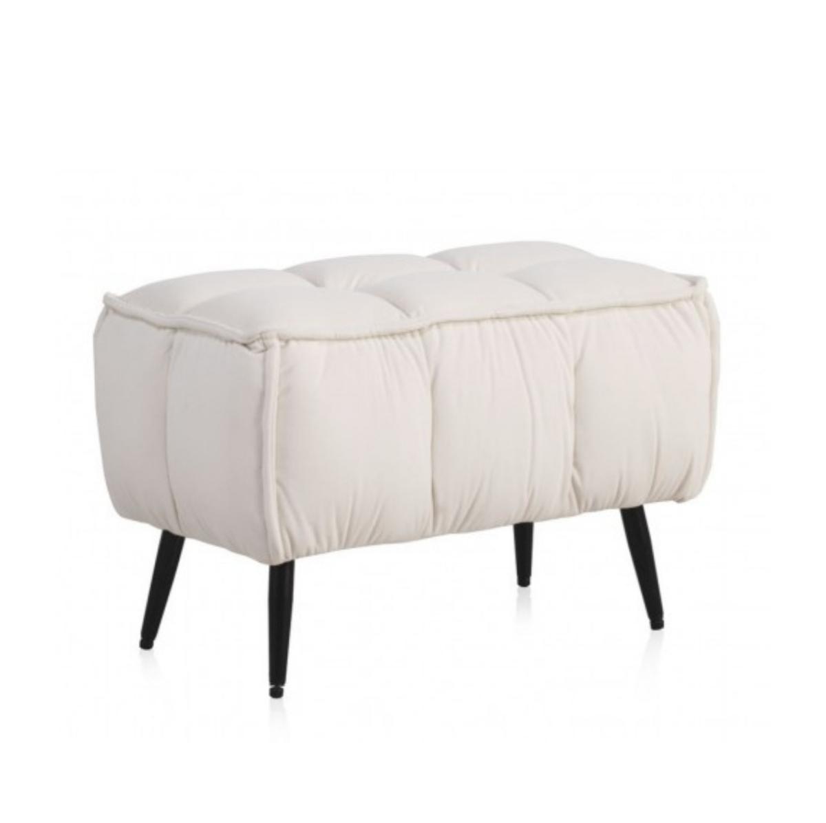 BANQUETA TAPIZADA EN TERCIOPELO BEIGE CON PATAS METÁLICAS