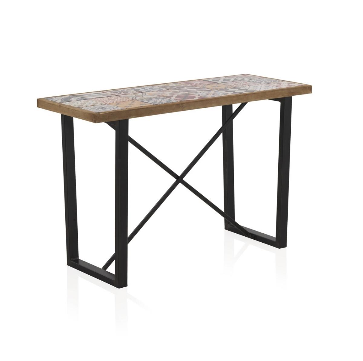 CÓNSOLA ADA 04 DE MADERA CON SOBRE DE CERÁMICA Y PATAS METAL